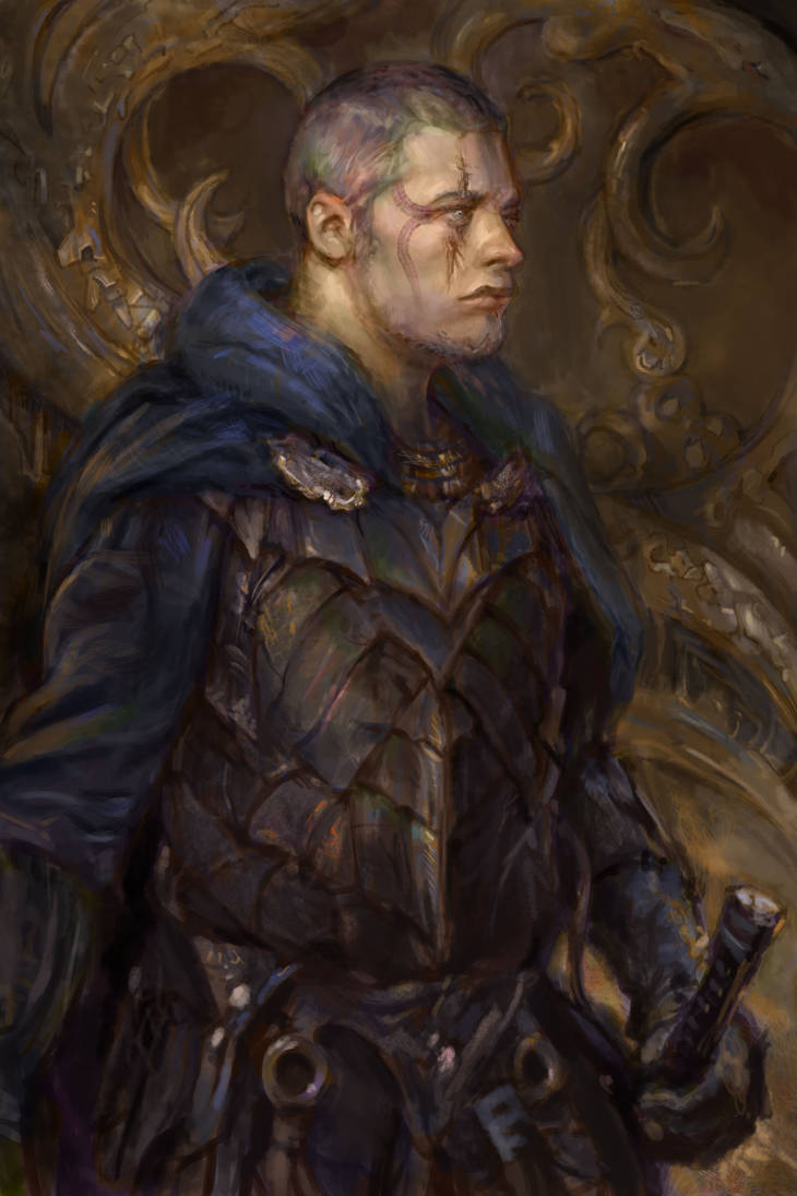 Ademar in person and afar is a massive, hulking individual of a human. Large densities of muscle and fat encompass his person, honed by the training he has received at the Academy as a Dreadlord. His body is detailed by scars and healed, but not faded wounds he has received from combat whether in the training grounds or on an actual battle. His eyes blue as the Cortosi Sea and his hair brown like oak, although sometimes he is seen nearly bald or short which he prefers most of the time. A scar on his right eye from the dagger of an enemy to avoid being blind in his right eye. He’s exactly the man one would have multiple foes attacking him at once.