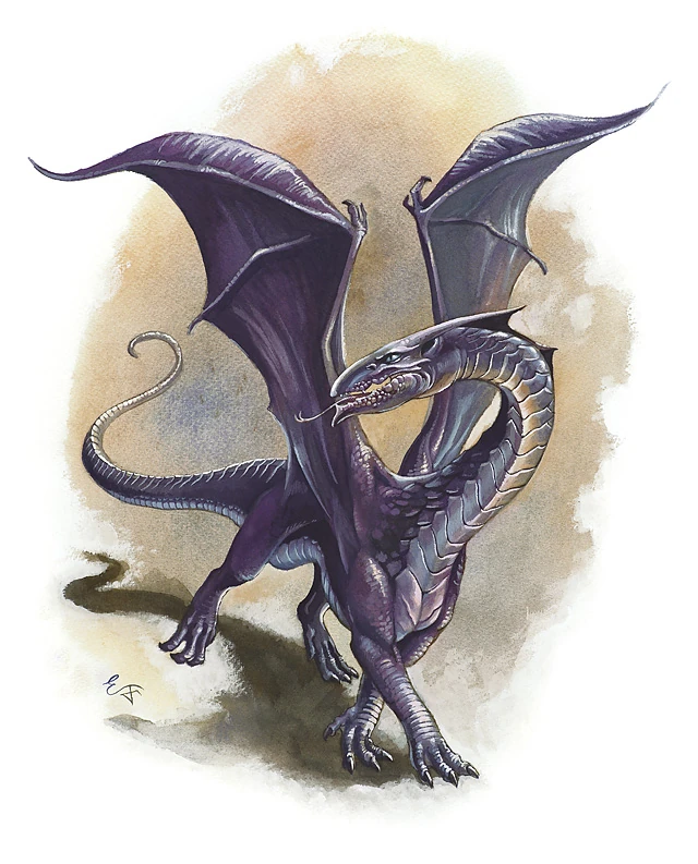 Purple dragon: a fearsome body that many would call the apex of mortal potential. Hebemarri can fly, swim, climb, burrow, slash with claws, bite with teeth, and breath a corosive mist that melts all but precious metals and gems.