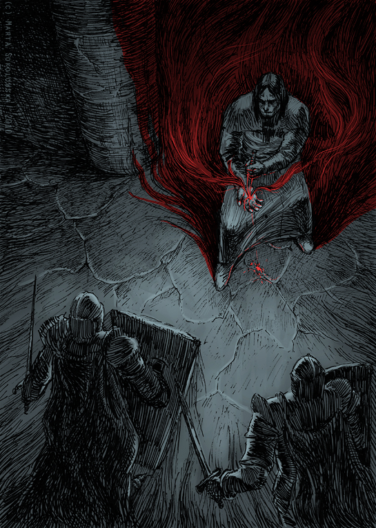 Hemomancers cast their spells first with various hand movements with the final channel of the spell being either the cutting of flesh, or the application of their blood.