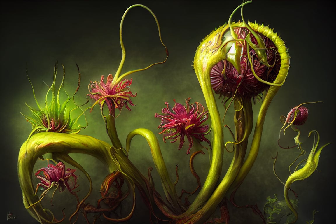 Carnivorous plant that entangles itself in bushes, tree branches, and other various game and bird habitats. Once contact with prey animals is made, it releases an adhesive to trap them before slowly contracting and wrapping around it. Only when they are completely wrapped around their prey do they begin secreting digestive chemicals, though the animal has typically suffocated by this point.
