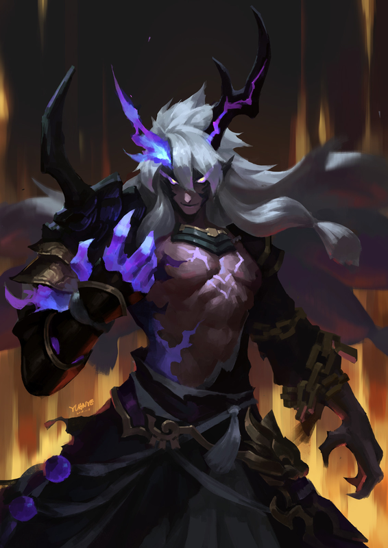 Vairos bears a mane of long, white hair and has warm, dark gray skin that is just bordering on brown. He is muscular and well built. Vairos stands tall among drow males, likely owing to his hybrid nature as a skall. While he appears much as drow do, a number of features set him apart from his pure drow cousins, namely the black sclera of his eyes, the wreath of violet umbral energy which cloaks much of his body, the veins of that same energy that run through portions of his skin, and the prominent, antler-like, violet horns that crest his head. His facial features are sharp and angular.